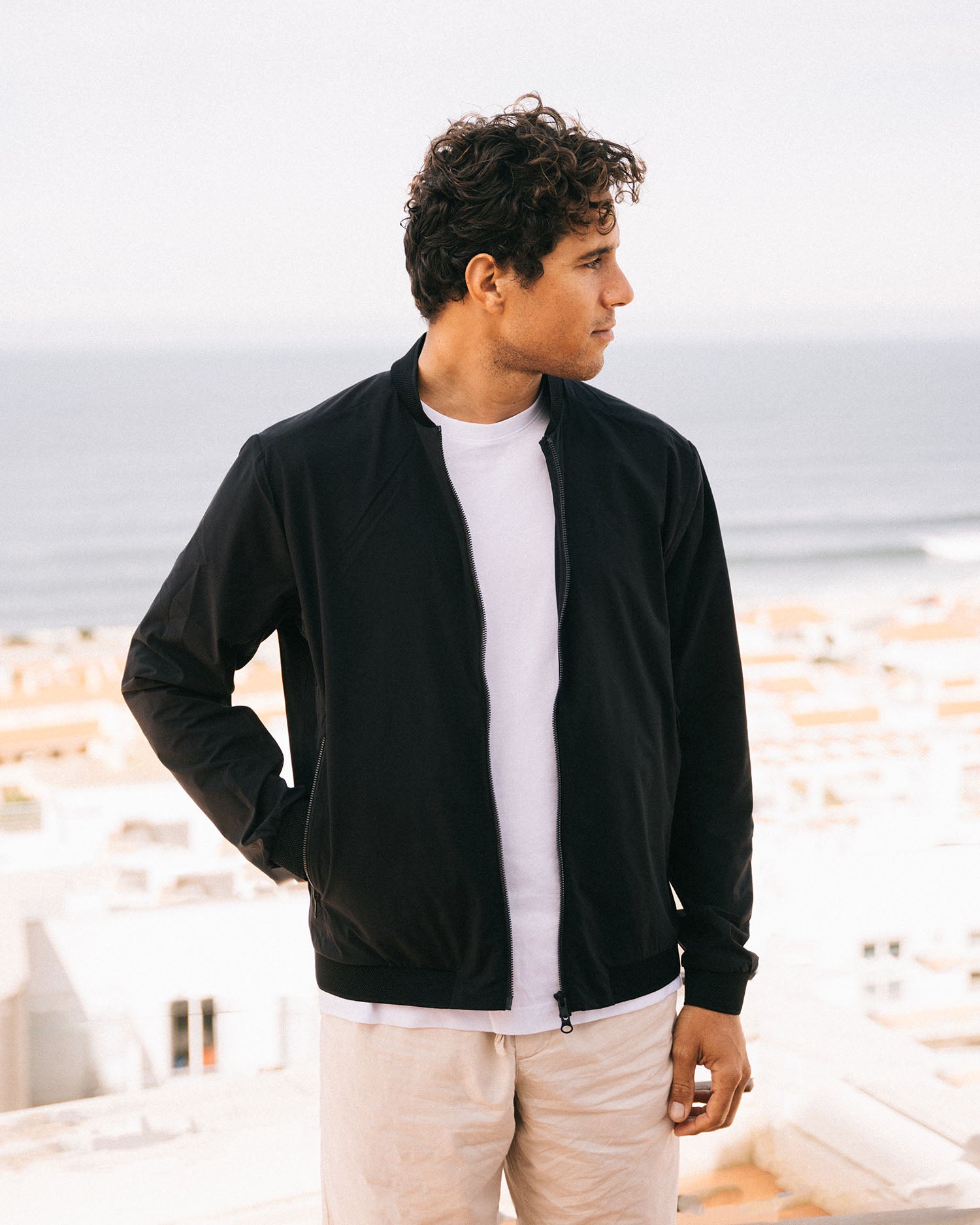 Campo is a lightweight Harrington-inspired jacket designed for warm and mild conditions throughout spring and summer. Its wind-resistant, water-repellent fabric offers light protection from coastal breezes and occasional drizzle, while maintaining a breathable and comfortable feel on warmer days. The clean, tailored silhouette brings a modern interpretation of the classic Harrington style, making Campo an easy choice for both city wear and relaxed coastal settings. 4-way stretch enhances freedom of movement and everyday comfort, keeping the jacket light and versatile throughout the day. Designed for mild temperatures where only a light outer layer is needed, Campo delivers effortless functionality with a refined, minimalist look.