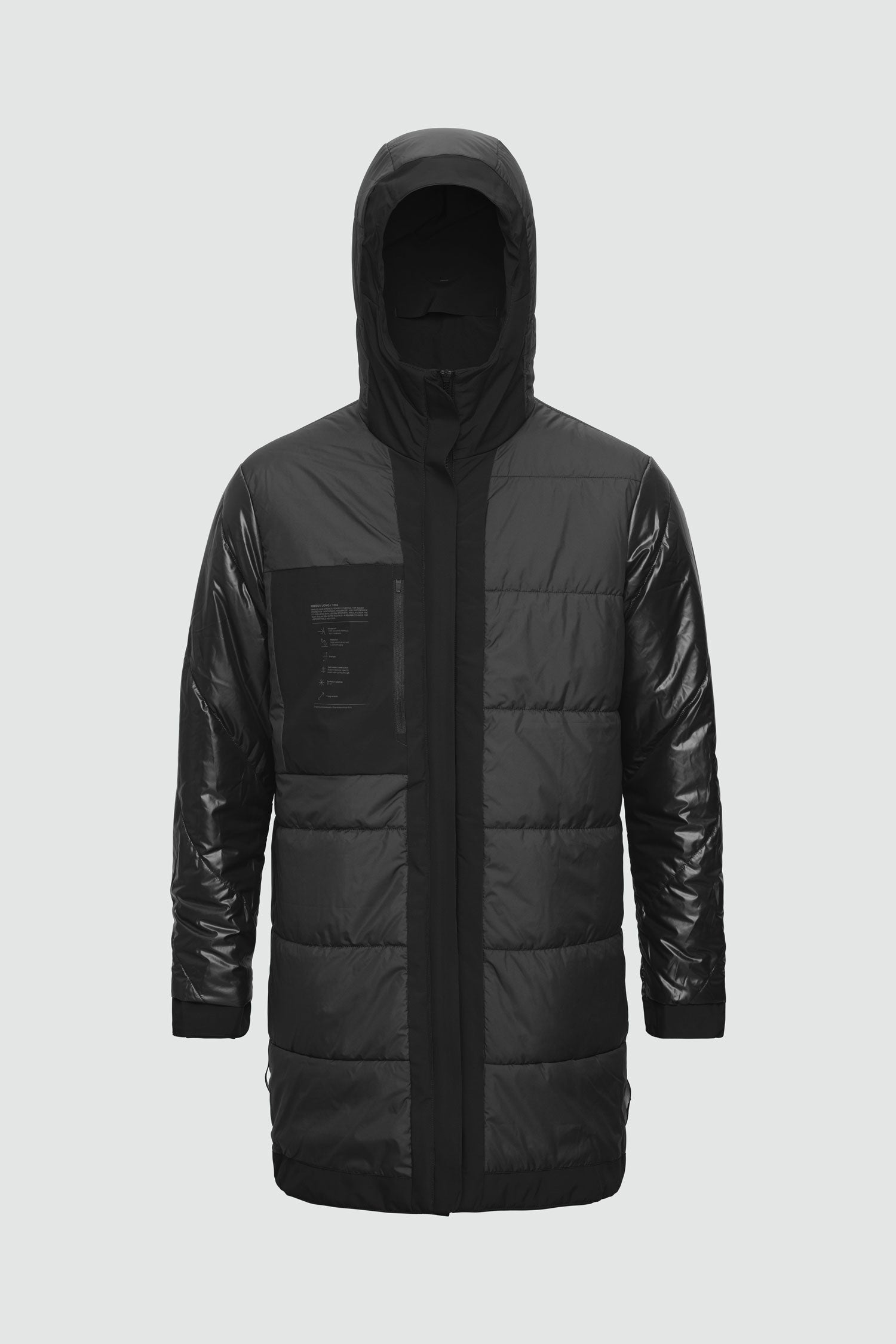 Nimbus Long extends the classic Nimbus for added coverage while staying light and easy for every day of the week. Windproof and waterproof with seam-sealed construction, it keeps you dry and comfortable in changing weather. Insulation is dialed for balance: 120 gsm in the body and 80 gsm in the sleeves.
