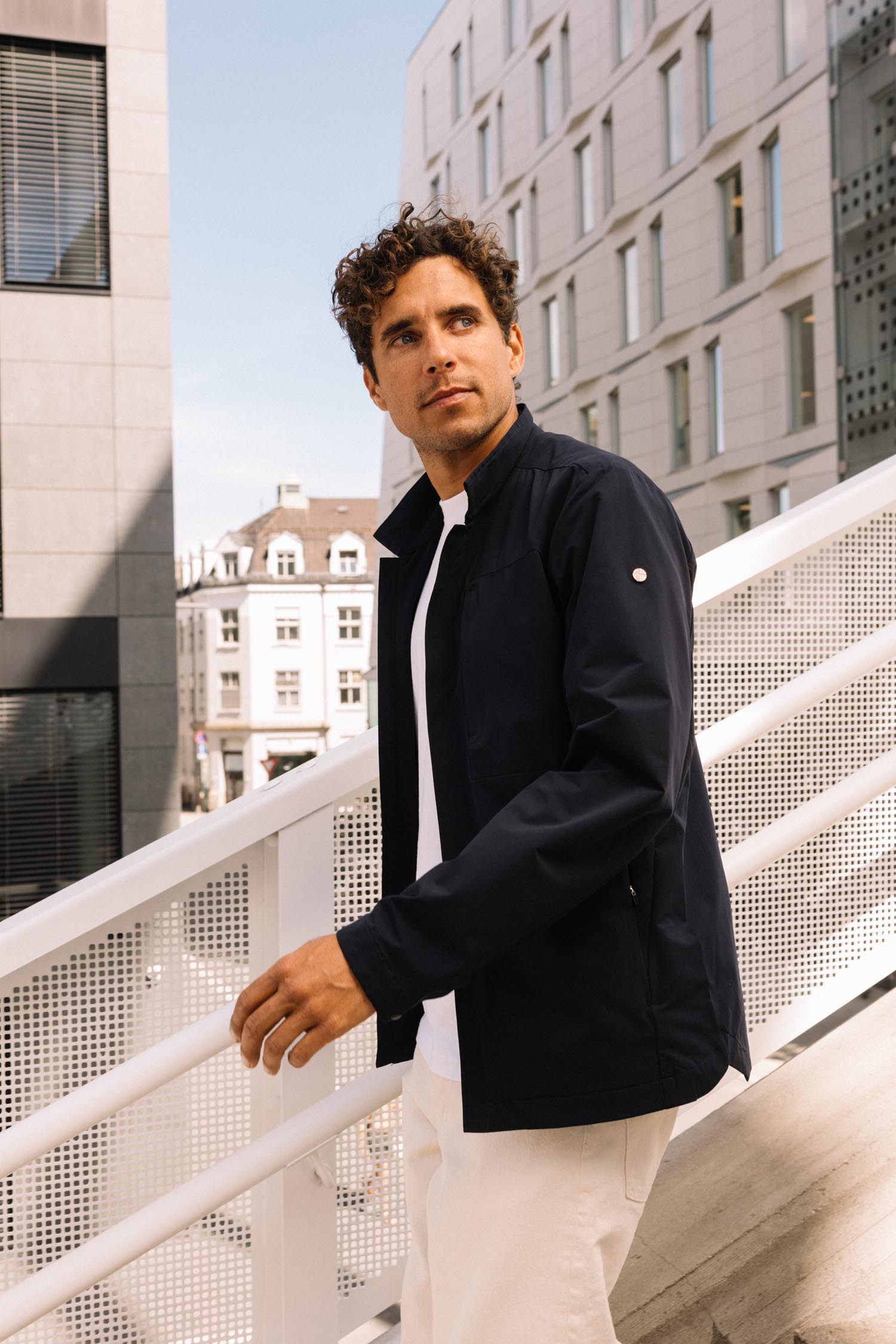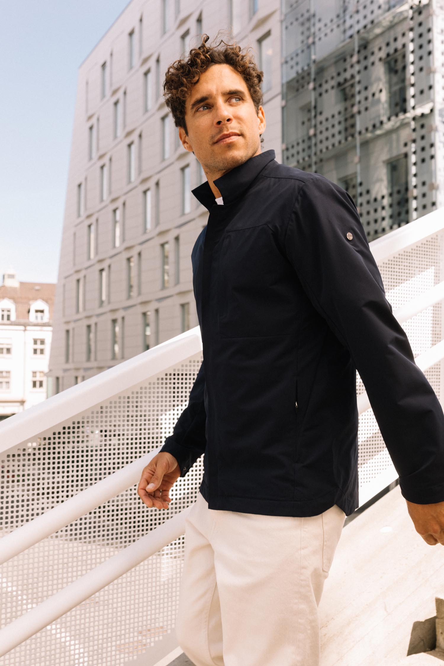 A lightweight hybrid jacket designed for breathable warmth and everyday versatility in mild conditions.